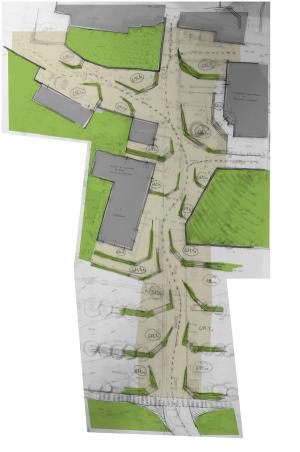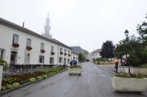 Le projet porte sur la requalification de la séquence d’entrée sur le site, depuis le parking au point bas jusqu’à l’accès à la Cité des Paysages, soit une distance de 250 mètres environ. Actuellement peu qualifiée, couverte d’un enrobé endommagé et de mobilier urbain standard, cette séquence a vocation à retrouver un aspect davantage rustique et authentique, en lien avec le caractère patrimonial des bâtiments qui composent le site. Les matériaux mis en œuvre, les blocs de pierre de Comblanchien et l’enrobé clair au sol, ont ainsi été choisis afin de retrouver cette esthétique de place du village qui s’est aujourd’hui oubliée sur le site au fil de ses transformations.