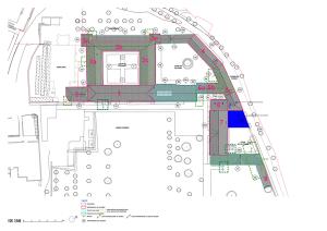 En plus des obligations environnementales citées précédemment, le projet des espaces extérieurs est également contraint par un classement de l’intégralité du sol de la colline au titre de la protection des Monuments Historiques. Celui-ci doit donc se intégralement en remblai sur l’existant, sans toucher au sol et suivant une logique d’altération minimale des éléments du site. Marqué par une forte pente, le cheminement est donc entièrement reprofilé par l’apport de matière, et maintenu par un jeu de blocs de pierre auto-stable qui servent également d’assises et de support de signalétique. Les interstices générés entre les remblais et le terrain existant sont l’occasion d’aménager de nouveaux massifs plantés en complément de ceux préexistants et de ramener sur ce site historique encore davantage d’espèces endémiques de Lorraine.
