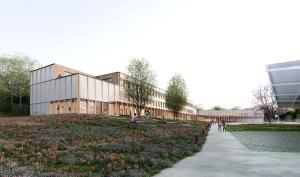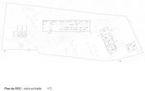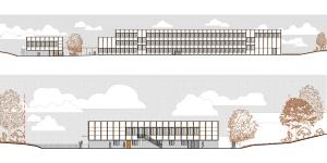 Enfin le cinquième et dernier enjeu est le déroulement du chantier en site occupé. Le projet est conçu de manière à optimiser le temps de chantier, tout en assurant du confort aux usagers pendant toute sa durée. Il s’agit, d’abord, de concevoir un chantier efficace, qui limite les nuisances par une organisation fluide et le recours à la préfabrication. En parallèle, il s’agit de penser les installations provisoires comme des lieux fonctionnels et agréables à vivre et permettant la surveillance, à l’écart des nuisances du chantier et en cohérence avec les accès et le bâti avec la végétation existante.