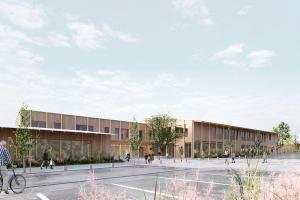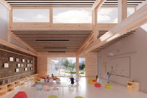 La terre et le bois seront omniprésents dans l’école. L’utilisation d’épicéa ou de sapin en habillage mural intérieur confèrera aux différents espaces une ambiance saine et chaleureuse.