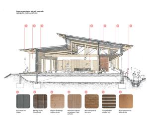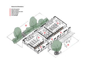 La mise en avant des matériaux naturels bruts, le confort bioclimatique pour réduire la technicité du bâtiment et la constitution d’un monde intérieur qui s’ouvre sur la végétation permettant aux enfants de grandir, de s’approprier l’espace, de s’épanouir.