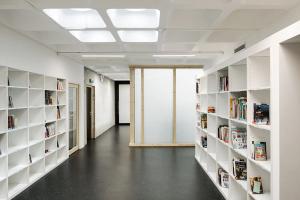 Le projet consistait en l’extension de la surface dédiée à la présentation des ouvrages, ainsi qu’à l’augmentation des surfaces de bureau et d’accueil, à la création de vestiaires pour le personnel et de sanitaires pour les visiteurs.