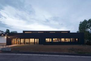 Le bâtiment se situe dans un tissu urbain peu dense qui évolue lentement depuis les années 70, composé de maisons individuelles (en milieu de parcelle), et d’équipements tels que le collège sur la parcelle voisine. La végétation est assez présente sur la parcelle et aux alentours, notamment le parc du domaine de l’Asnée, à Laxou (dans l’axe sud du bâtiment). Le quartier est implanté sur un relief relativement marqué. La parcelle elle-même présente une forte déclivité. Ainsi le bâtiment dispose d’un bon potentiel d’ensoleillement et de vues sur l’extérieur.