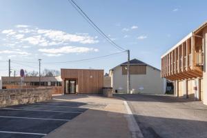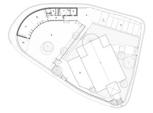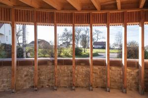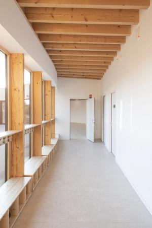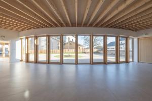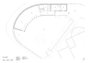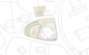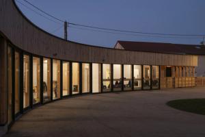 Le fil rouge est le muret en pierre. Nous l’avons prolongé pour ceinturer l’ensemble de l’ilot. Le bâtiment périscolaire vient se blottir dans le creux de l’anse pour libérer un grand vide central : la cour. Cette cour protégée, à taille humaine est essentielle pour faire le lien entre le périscolaire, la salle des fêtes et l’église. Cet ensemble pourra répondre à de multiples usages pour la collectivité. Une telle restructuration est déterminante pour les 238 habitants du village. Les principes de mutualisation et polyvalence sont essentiels pour favoriser les usages et valoriser au mieux l’investissement.