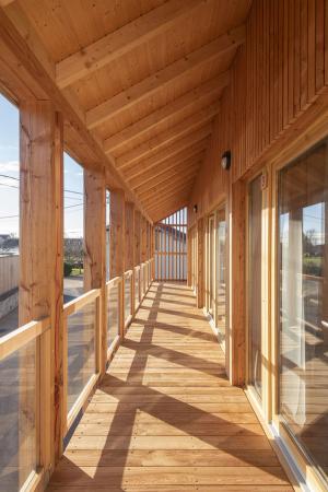 Les bardages et structures en bois de douglas proviennent de la scierie Mandray à Taintrux (88) et la scierie Strabach à La Bourgonce (88)