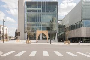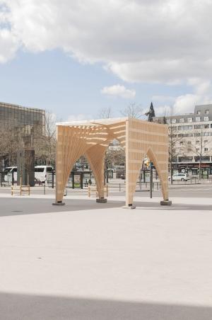 La structure auto-stable sur ces quatre pieds s’apparente à une table, un tabouret géant