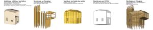 - une structure bois ligaturés et remplissage de "caisson paille".