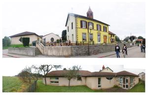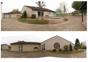 La complémentarité de l’étude urbaine et architecturale a permis d’établir une cohérence globale et d’offrir une nouvelle identité au centre bourg. L’école a été partiellement démolie. La partie conservée a été totalement rénovée et rhabillée par une isolation extérieure. La partie en extension s’étend le long de la nouvelle voie. Son horizontalité révèle la topographie du site.