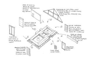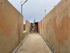 Les 700 m² de murs de 30cm d'épaisseur se composent de terre crue de Sermentizon, de graviers roulés extraits dans la rivière Morge qui traverse Maringues, et d'une faible proportion de ciment (2%) nécessaire au décoffrage du mur.