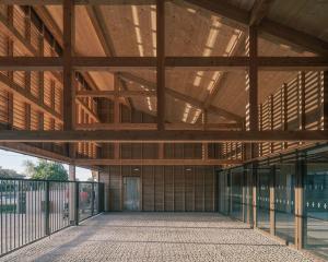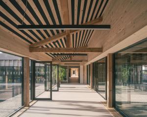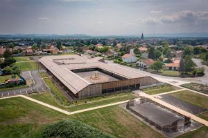La rationalité du paysage intérieur des cours dialogue avec la ruralité du paysage extérieur. La noue plantée périphérique infiltre, récolte et met en scène de manière naturelle les eaux pluviales de l'école dans des cuves destinées à l'arrosage. L’ensemble de l’écriture architecturale du projet fait référence, de manière contemporaine, aux charpentes, torchis et colombages des anciennes tanneries de la Morge.