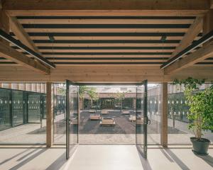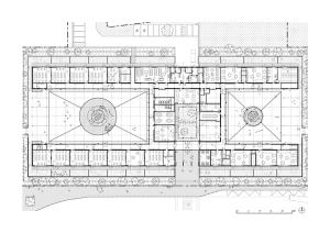 L’édifice unique regroupe l'école maternelle et l'école élémentaire autour des deux patios : les cours de récréation. L'entrée partagée et les espaces communs rassemblent ces deux écoles autour d'un troisième patio, central, dédié au temps périscolaire. L’organisation simple du plan permet d’apporter une réflexion sur la question de l’intériorité, de l’enceinte, de la cour intérieure qui fonctionne en patio. Une typologie quelque peu "monacale" qui dédie le cœur au collectif et la périphérie à l'individualité de chaque salle de classe, tout en maintenant des liens visuels entre ces différents espaces.