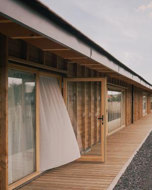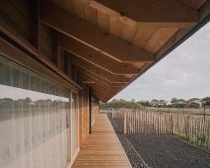 Le projet rend hommage au lieu en s’inscrivant dans la morphologie bâtie environnante, et en empruntant le langage rural des noues, clôtures et matériaux.