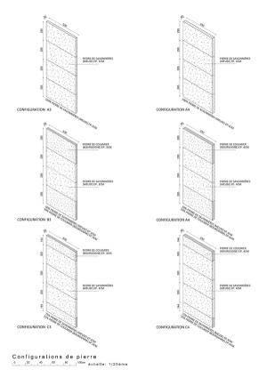 Quelle dilatation maximale des bois, dans toutes les configurations ? humidité, UV, température... Combien de millimètres doit-on laisser entre une pierre et un bois ? Quel type de joint EPDM ? quelle garantie, quelle résistance ? Quelle quincaillerie de support ? quelle résistance à la corrosion ? Quel comportement au vent ? Quelle résistance des pierres ? aux chocs ? à la flexion ? au cisaillement ? quelles sollicitations pour le public ? Comment gérer la partie en garde-corps ? Quel vieillissement de la pierre et des bois ? structurel ? esthétique ? Quels protocoles pour le choix et la taille des pierres ? pour le choix et la taille des bois ? Quel Plan d’Assurance Qualité pour la mise en œuvre ? Quel dispositif d’entretien ? Comment remplacer une pierre endommagée dans 15 ans ? Quelle garantie d’étanchéité ? quel type de pare pluie ? Quelles mesures de surveillance pour les utilisateurs ?