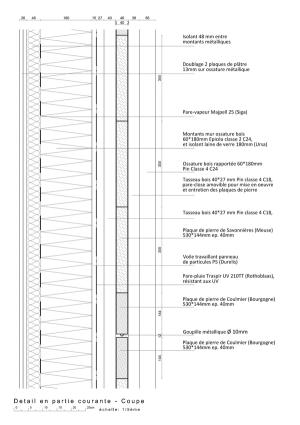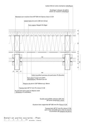 A priori on ne fixe pas de la pierre rigide sur un support bois qui bouge, se dilate. Nous avons fait une demande d’ATEX pour ce système de fixation des plaques de pierre (4cm d’épaisseur) dans des cadres bois à joints souples.