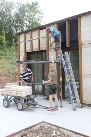 La voie est ouverte : nous savons désormais habiller les bâtiments bois avec des plaques minérales (pierres, béton, céramique, terre cuite) à des prix parfaitement raisonnables : moitié moins cher que les systèmes de pierres agrafées sur support béton.
