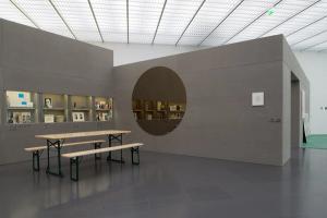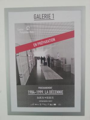 Cette scénographie met en place un décor composés de voiles de faux béton banché. Ceux-ci sont réalisés à partir d'une structure légère habillée de panneaux de MDF teinté dans la masse de la marque Valchromat. Les travaux ont été réalisés par l'entreprise Alsacienne virtuose Lumidéco. Dernière décennie d’un siècle et d’un millénaire, les années 1990 s’ouvrent sur un temps de crise des institutions et des idéologies. L’exposition 1984-1999. La Décennie revient sur l’esprit de cette époque, ses fondements, sa beauté. En 1991, le roman de Douglas Coupland Generation X : Tales for an Accelerated Culture lance la « marque » d’une génération de nomades, nés entre 1965 et 1977, baby busts détachés, adolescents éternisés, qui s’opposent aux baby boomers.