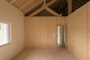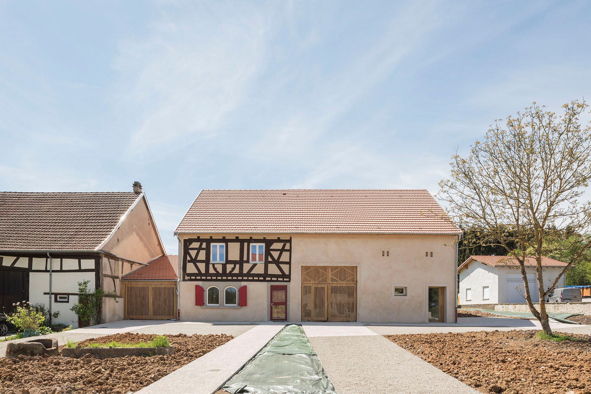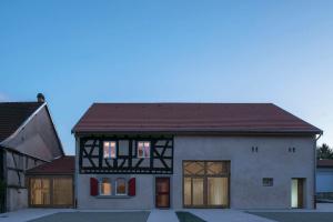 Le projet maintien donc, dans l’aspect extérieur, une architecture de village presque intacte, apportant ci et là quelques détails contemporains. A l’intérieur des volumes généreux, remplis de lumière et ouvert sur le jardin réinterprètent cette architecture de pan de bois.