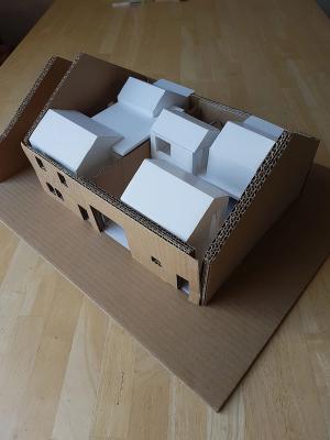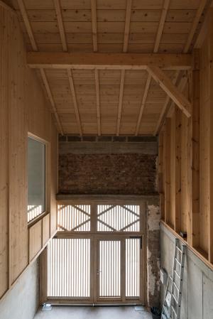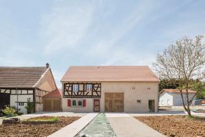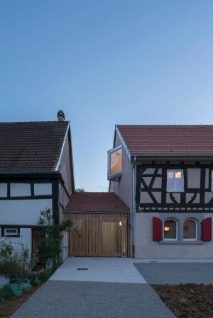 La ferme ou se situe précisément le projet est typiquement lorraine avec son usoir, son logis à colombage (caractéristique de cette partie de la Moselle) mitoyen d’une grange, plus tardive, construite en moellons enduits. L’ensemble est très abimé au démarrage du projet, en raison notamment d’une nappe phréatique toute proche, de la fragilité d’une construction à pan de bois ancienne construite avec les moyens du bord et peu rénovée dans son histoire. Des pathologies associées à des espaces peu adaptés à leur vocation à venir (bas de plafond, mono-orientés sur la rue) obligent à reconsidérer cette construction en profondeur tout en respectant à un principe cher aux propriétaires. Ils considèrent que l’extérieur d’une construction appartient au monde, au public, et que l’intérieur seulement relève du privé et de l’intime.