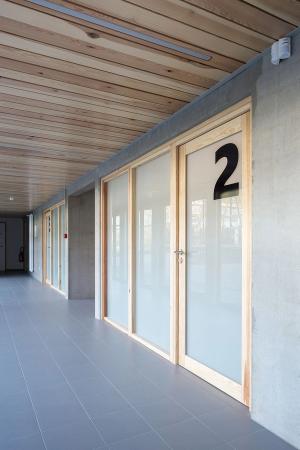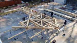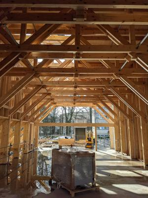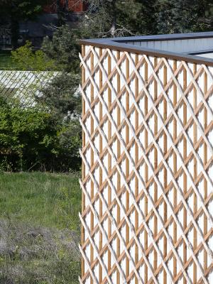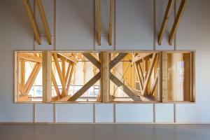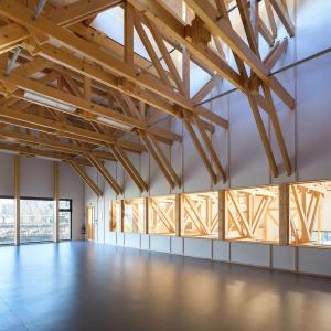 - omniprésence du bois massif et des petites sections : la charpente envahit et qualifie un volume parfaitement simple.