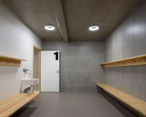 Les grands rangements sont disposés directement en pourtour du terrain pour accéder facilement aux différents modules de sport.