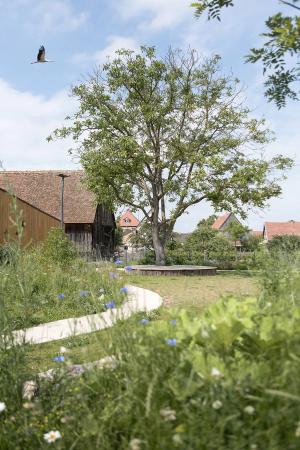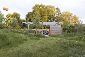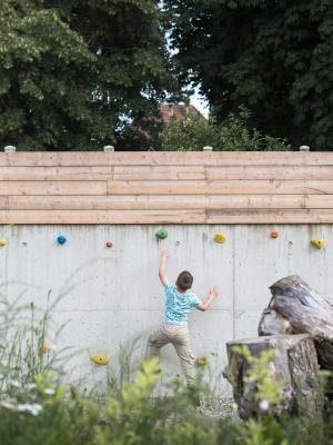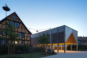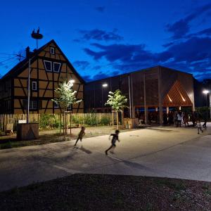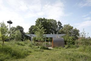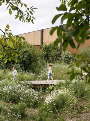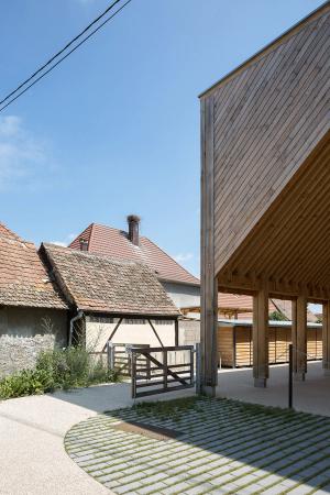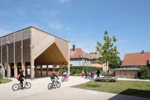 Une volumétrie simple, une toiture dissimulée en bac acier, à faible pente qui accueille 200 m2 de panneaux photovoltaïques pour compléter la production de cette commune autonome en énergie.