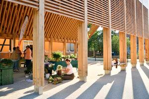 - du chêne pour les poteaux (bien robuste sur l’espace public)