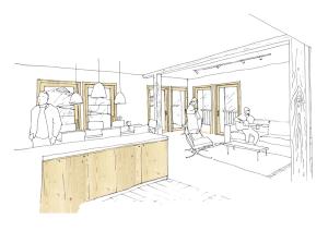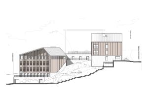 - saisonnalité : adopter une architecture mesurée et contemporaine qui révèle ses systèmes constructifs et le territoire où elle s'établit, aux façades qui répondent au grand paysage à toute saison. Loin d'un joyau blanc international d'un chalet neo-régionaliste.