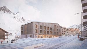 Le programme regroupe entre 60 et 70 logements, une crèche de 60 berceaux et des stationnements sur une parcelle à forte déclivité à l'entrée de Tignes le Lac, aujourd'hui occupée par un chalet dont les premières traces remontent aux années 1960.