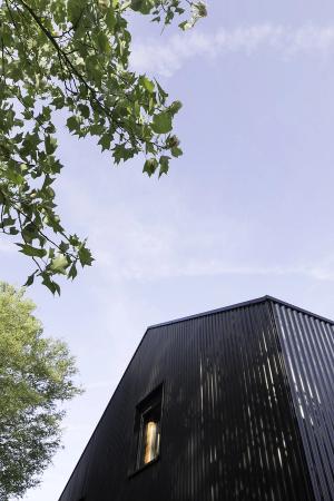 Le volume est étudié pour une compacité optimale : chaque m2 et chaque m3 sont calibrés pour offrir le meilleur rapport fonctionnalité / qualité d’espace / volume à chauffer. La façade sud est entièrement vitrée (protégée par une pergola à végétaliser), et la façade nord totalement borgne.
