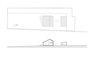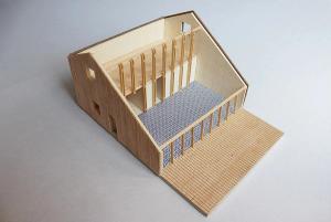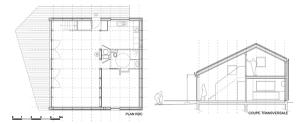 Le plan et la coupe sont basés sur une trame obsessionnelle de 1m x 1m : 9m x 9m au rez de chaussée et 9m x 4m à l’étage.