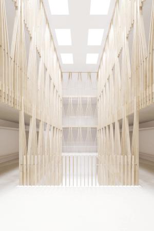 Ce grand vide qui se développe sur toute la hauteur du bâtiment permet de mettre en lumière et de lier l'ensemble des espaces du programme.