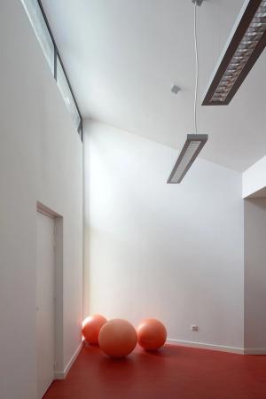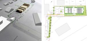 Le projet prend place dans un environnement diffus, entre le gymnase, le magasin GITEM et une zone pavillonnaire des années 80. Le parti architectural propose un bâtiment horizontal qui dialogue avec l’aspect « prairie » de la parcelle.