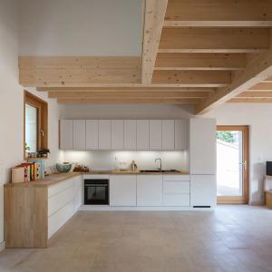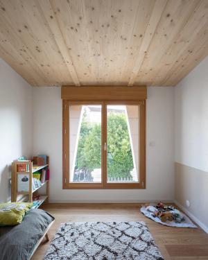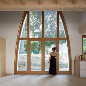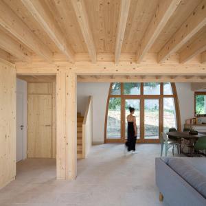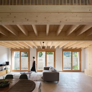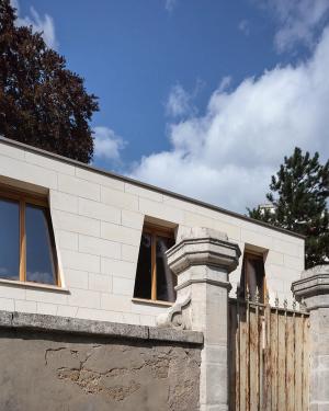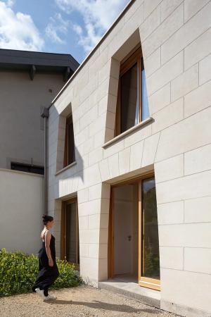 Maison de pierre et de bois qui explore la reconquête des techniques traditionnelles, le plaisir de l’artisan et l’écriture contemporaine.