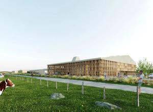 Notre bâtiment veut montrer l’exemple : une grande grille en structure bois, en épicéa scolyté (car ce n’est pas un déchet).