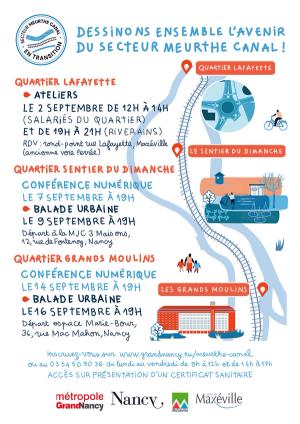 Le périmètre de cohérence Nord du Territoire à Enjeux Rives de Meurthe correspond à une frange de plus de trois kilomètres qui s’étend depuis le quartier Lafayette à Maxéville au nord jusqu’à l’ancien bâtiment des Grands Moulins plus au sud. Flanqué d’un côté par le canal de la Marne au Rhin, et de l’autre par la Meurthe, ce secteur fait actuellement l’objet d’une requalification urbaine et paysagère complète initiée par la métropole du Grand Nancy et portée par l’agence d’architectes-urbanistes Intensités. Dans le cadre de cette requalification, deux phases de concertation avec les habitants ont été initiée : l’une pour le diagnostic de l’ensemble du site, et l’autre pour l’élaboration du plan guide et des orientations d’aménagement.