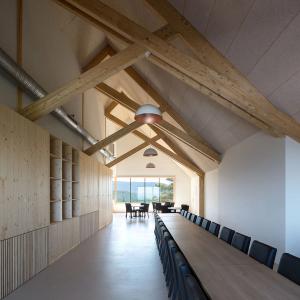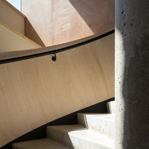 Au dernier niveau, la nouvelle charpente en bois est laissée apparente, offrant à la salle de réception traversante un volume généreux. La création d’une loggia permet à cette salle de disposer également de son propre espace extérieur tout en répondant aux contraintes réglementaires de sécurité.