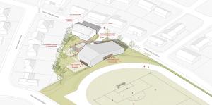 Dans ce contexte pavillonnaire, la volumétrie de l’équipement compte.