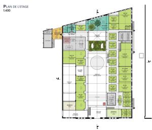 les salles de réunion, les espaces de rencontre suivent la même typologie avec des dimensions plus importantes.