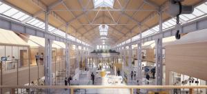 A l’intérieur du grand volume de la halle, les espaces s’organisent sous la forme d’un village.